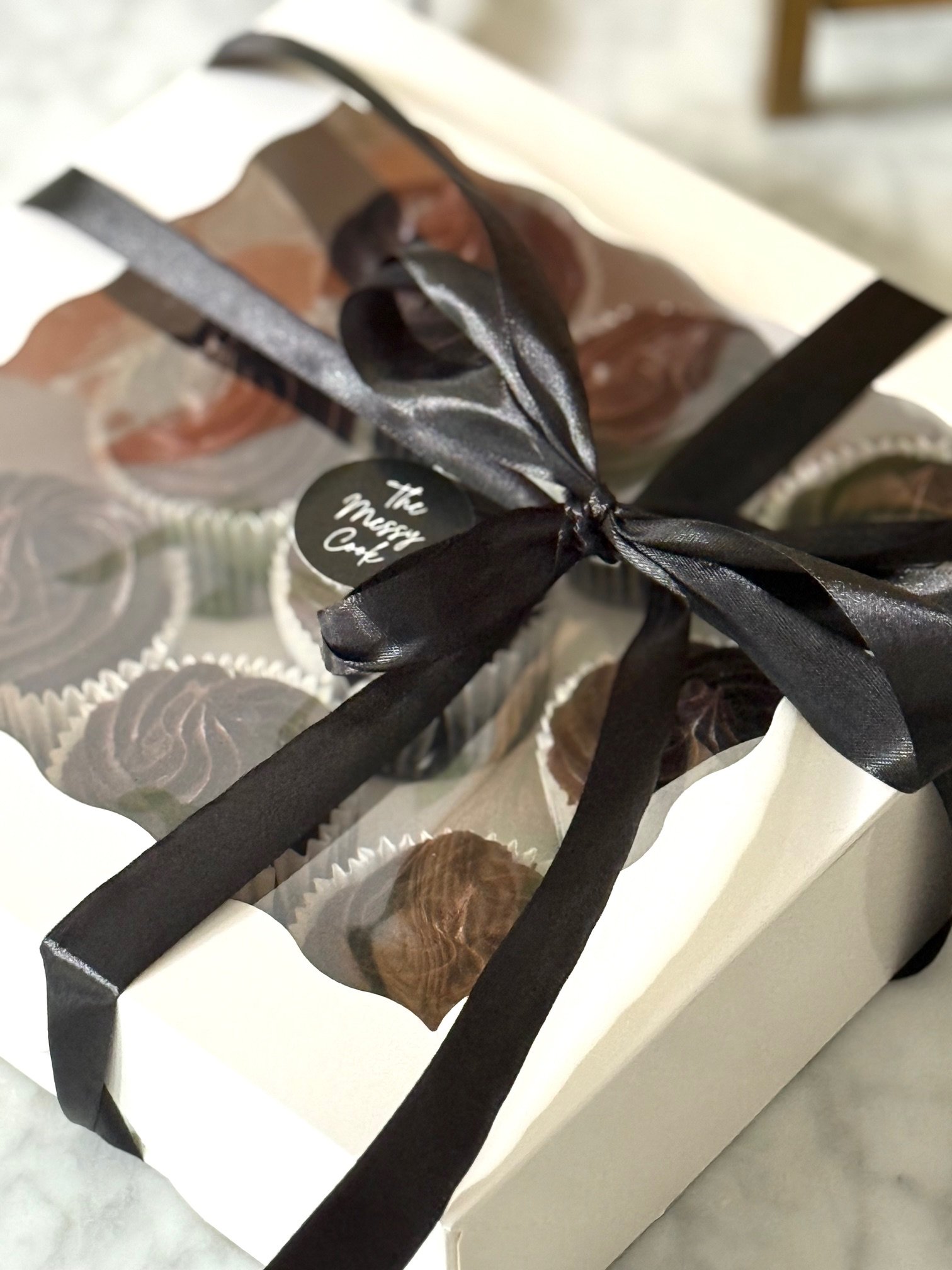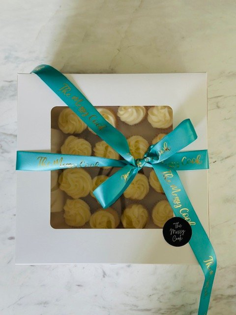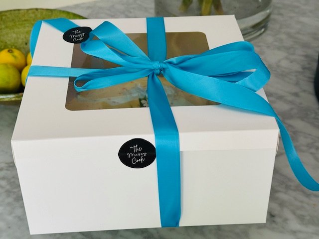 All of our luxurious Cakes and Desserts are beautifully presented in the Messy Cook box and ribbon