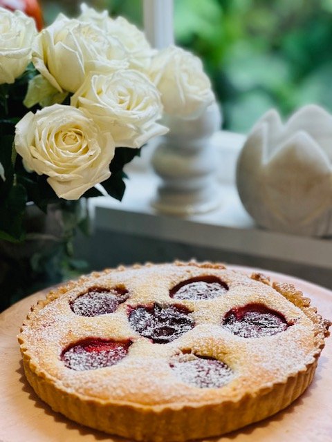 Every month I will be offering a classic Almond Tart with seasonal fruits to tie in with the freshest fruit from my supplier .