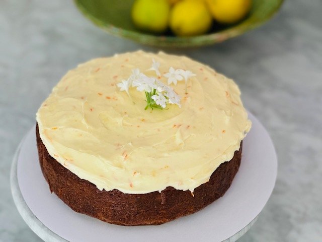 Made with organic carrots this 23cm cake is moist and fabulous ! Finished with  cream cheese icing and presented in our box with signature ribbon