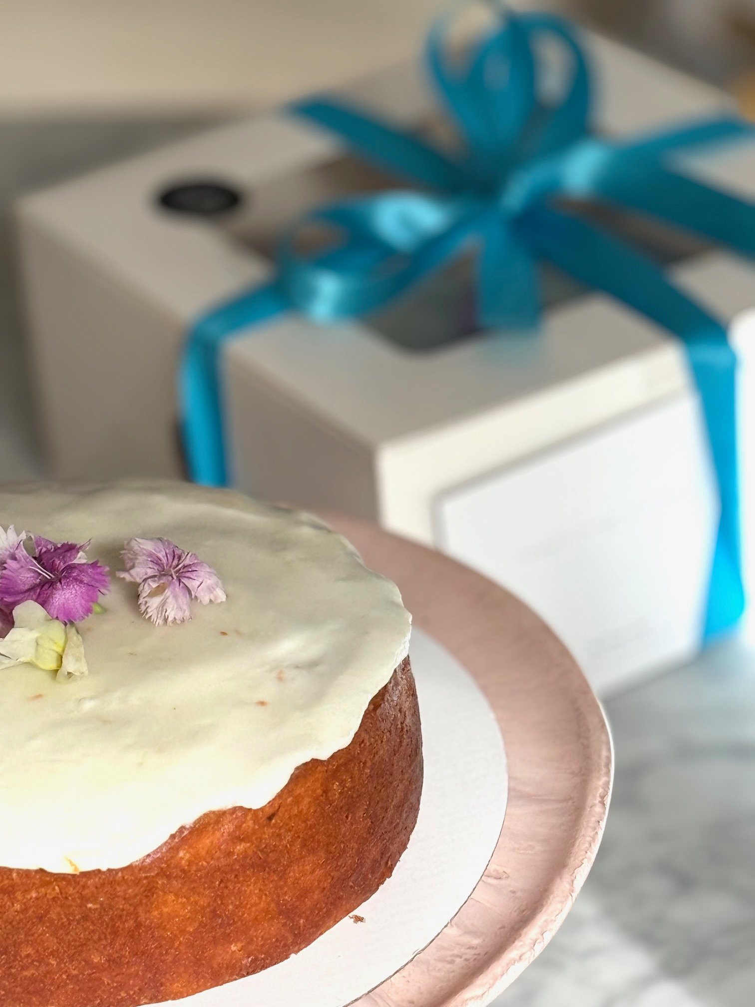 All of the cakes on the menu can be adourned with flowers of your choice for an additional cost of $5 per box so please when ordering ask me and I will always be happy to assist.