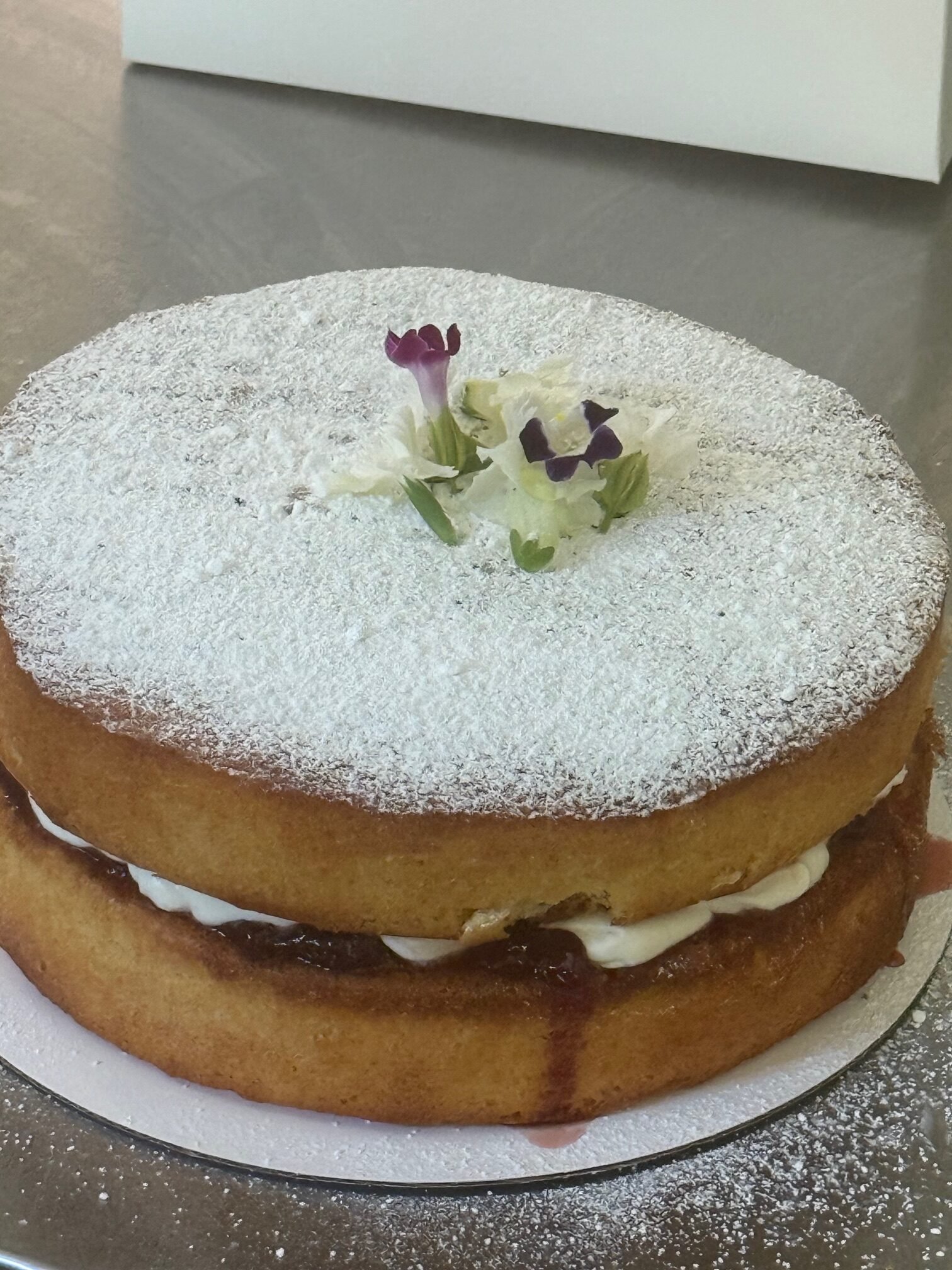 Light and fluffy  2 layers of classic Victoria sponge filled with the Messy Cooks Jam and butter cream icing .