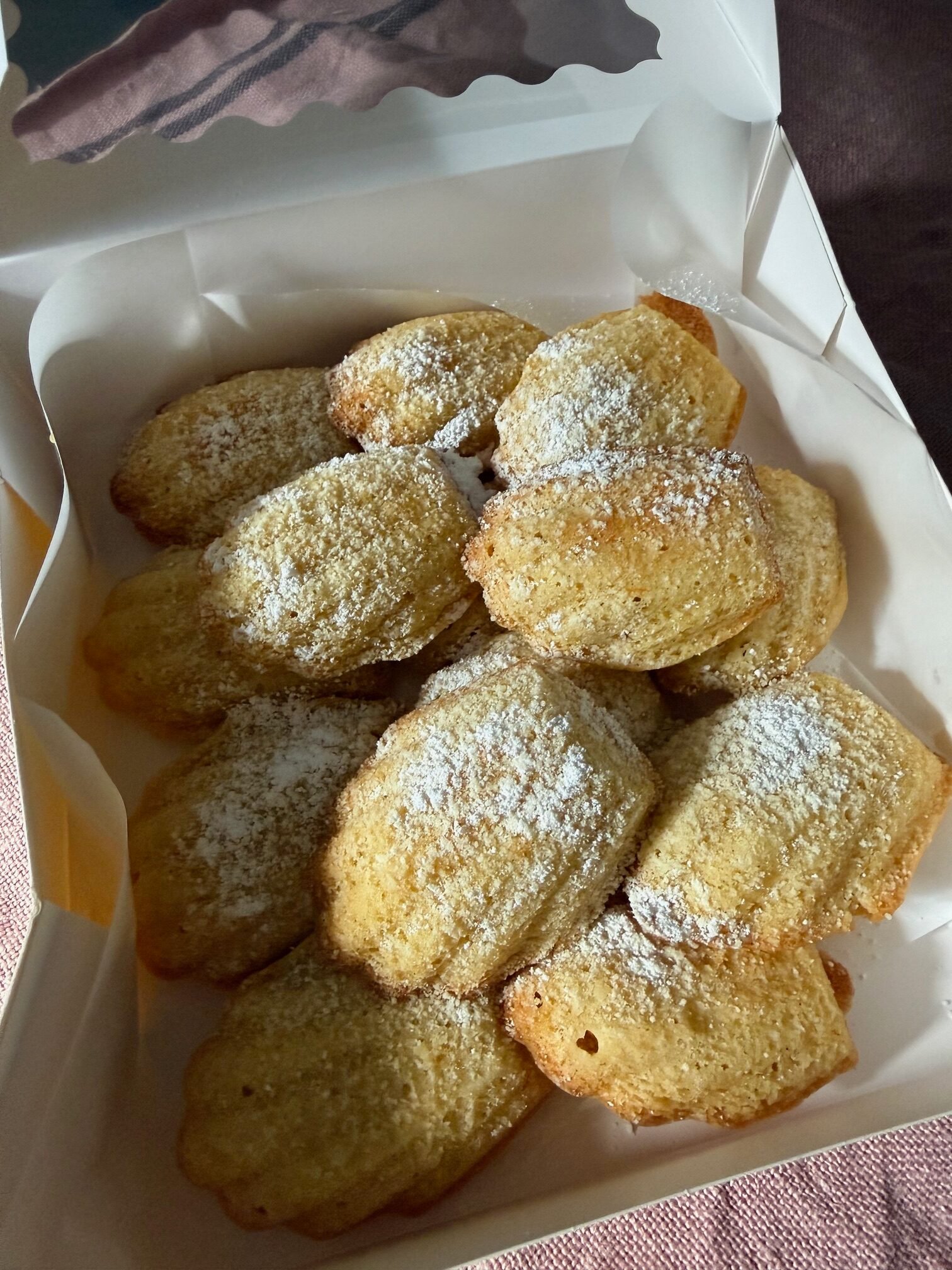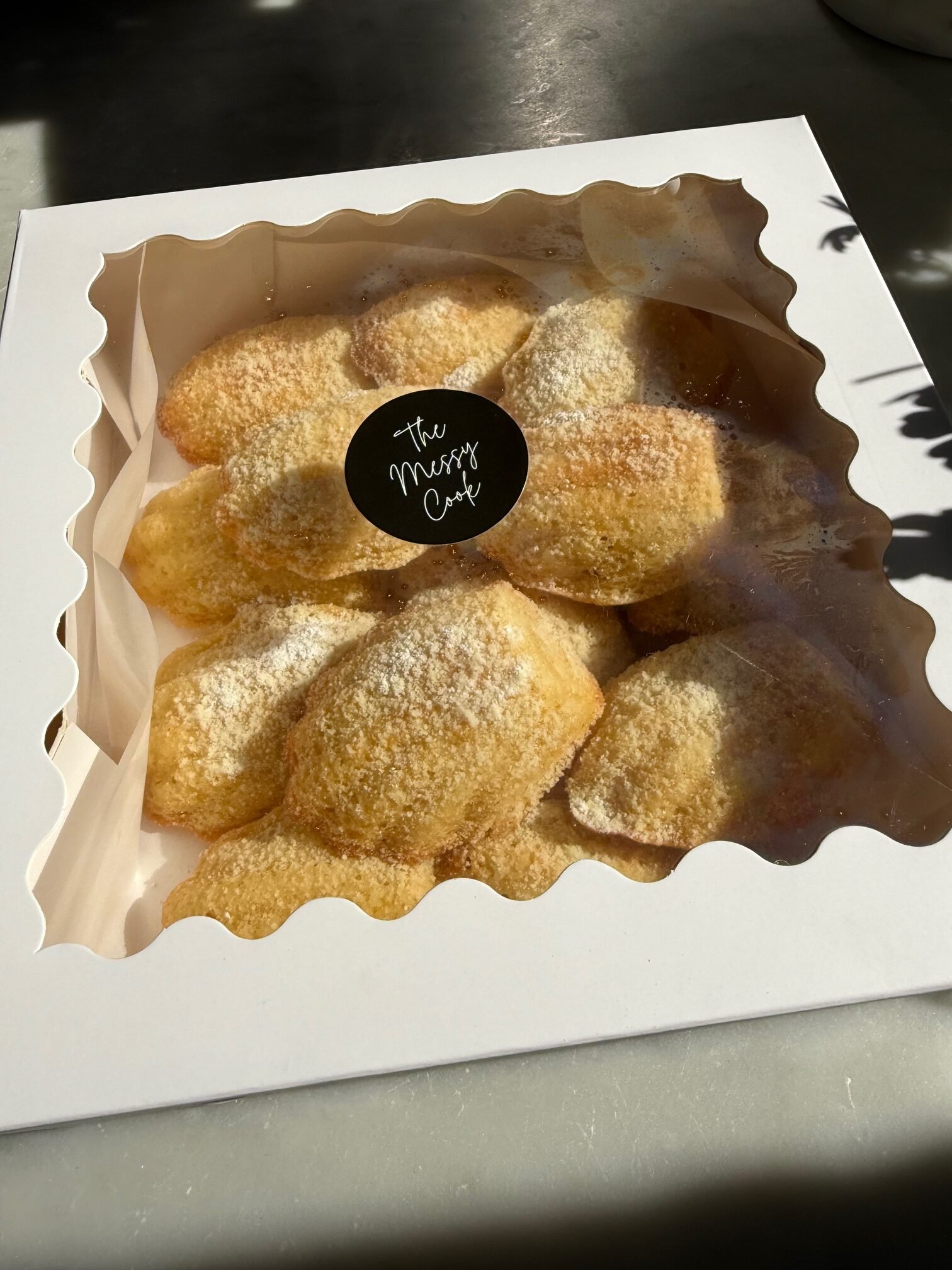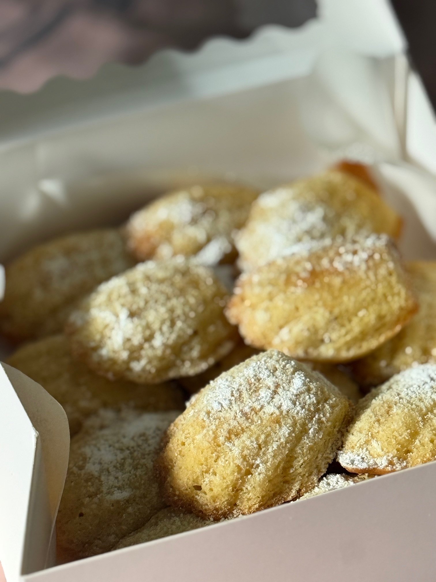 Madeleines are small, traditional French sponge cakes that are recognisable by their distinctive seashell shape. Originating from the Lorraine region in Northeastern France, flavoured with orange rind. Lovely with a cup of tea or coffee!