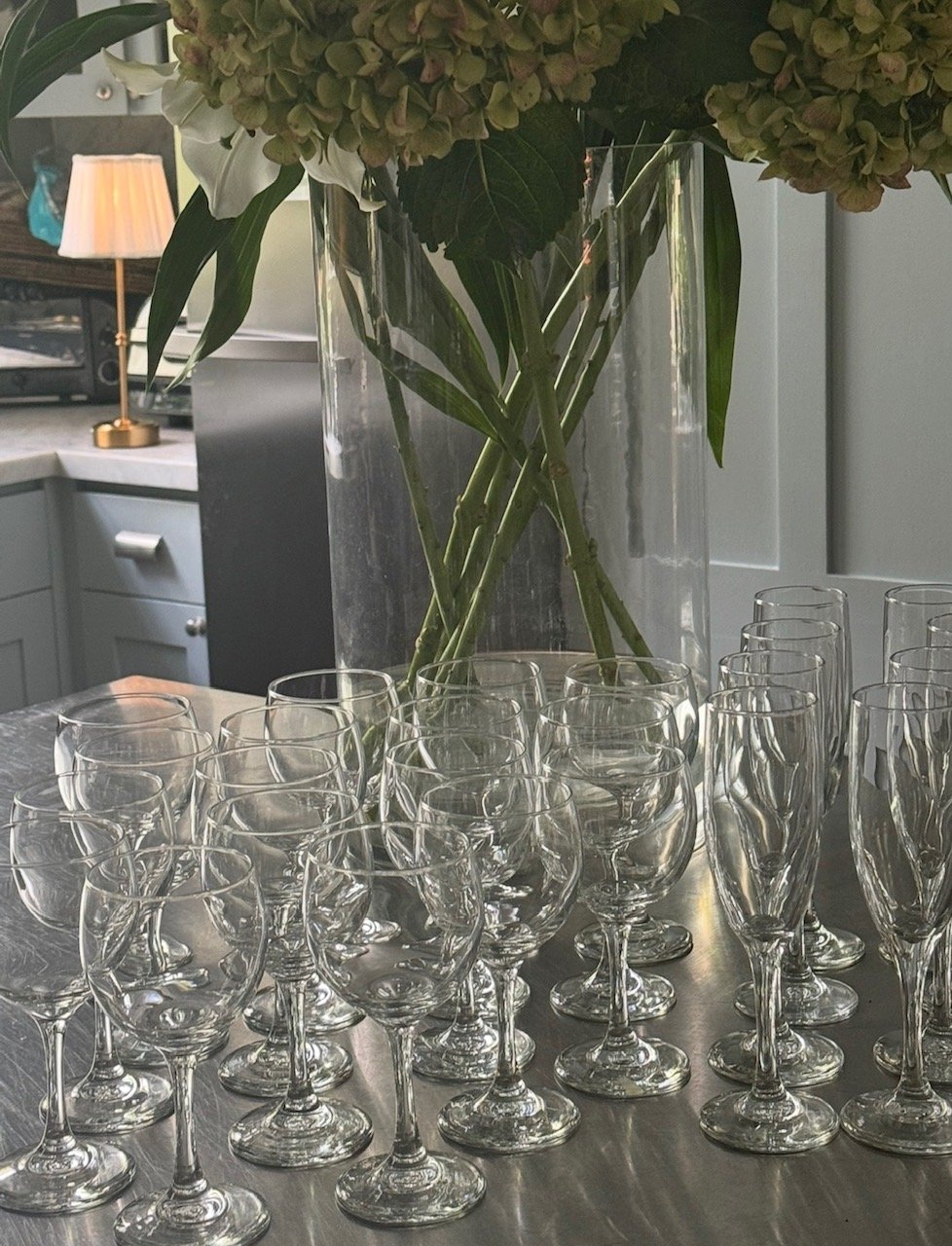 Champagne and wine glasses Boxed- $50 for boxes of 100 – 7 day rental, return clean please