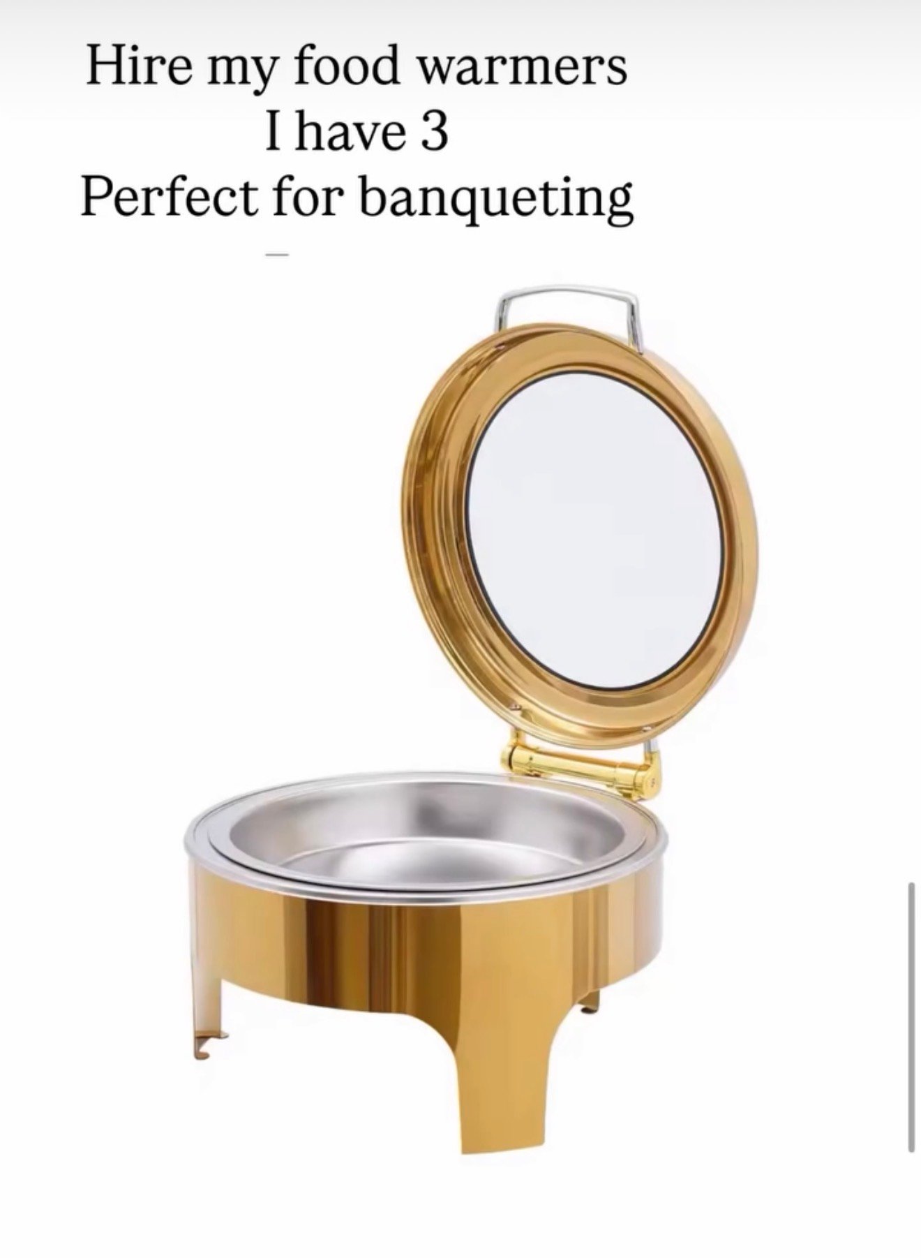 3 food warmers available $70 each for a 7 day return rental