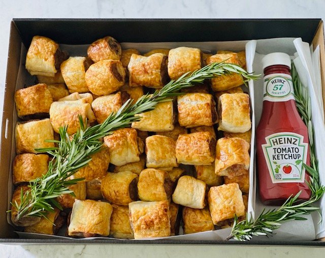Pork & Apple sausage rolls box 60 with Ketchup $110