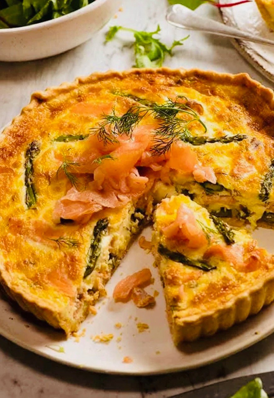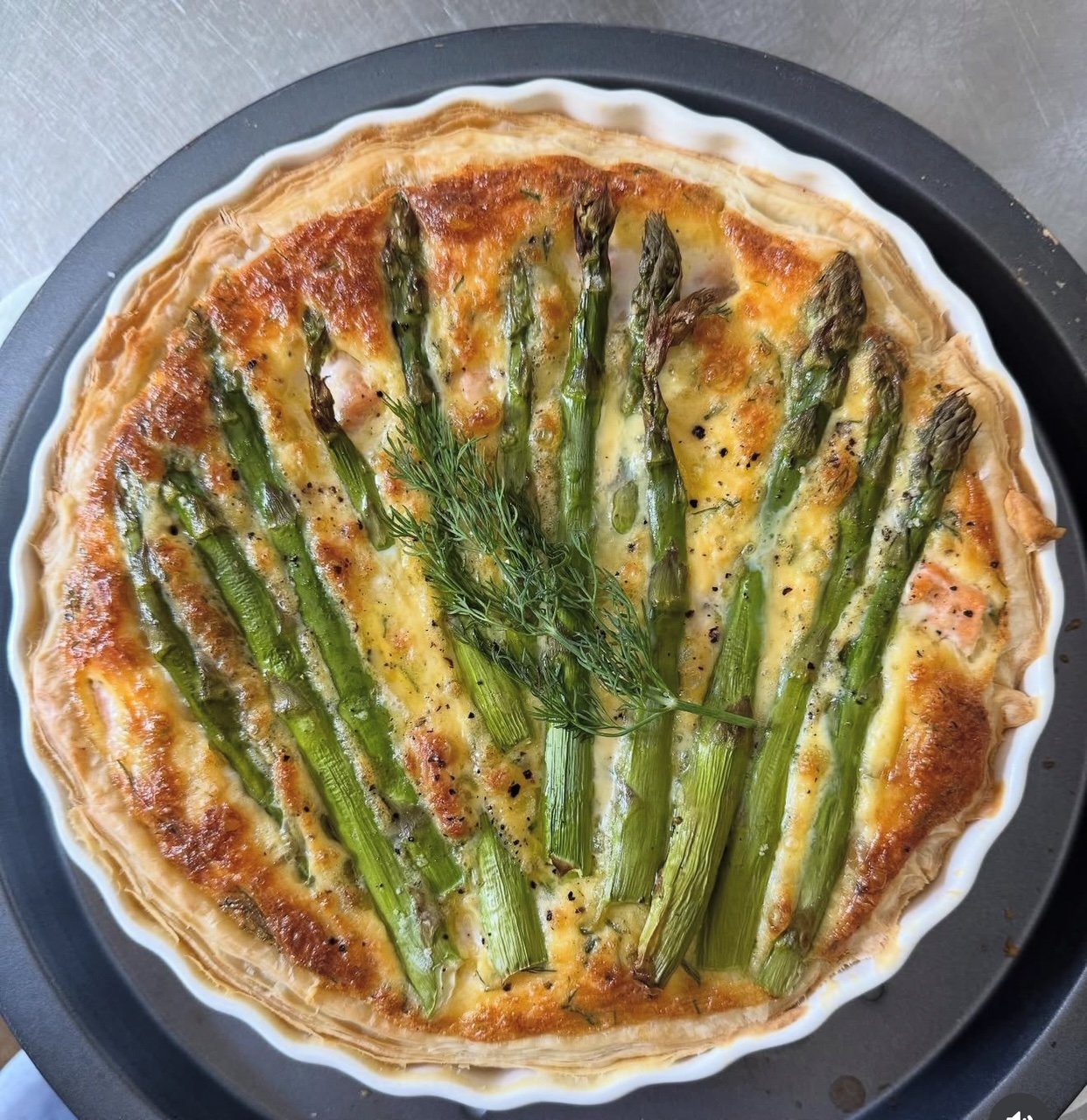 Christmas Salmon Leek Asparagus & Dill quiche $65 with crust $60 crustless