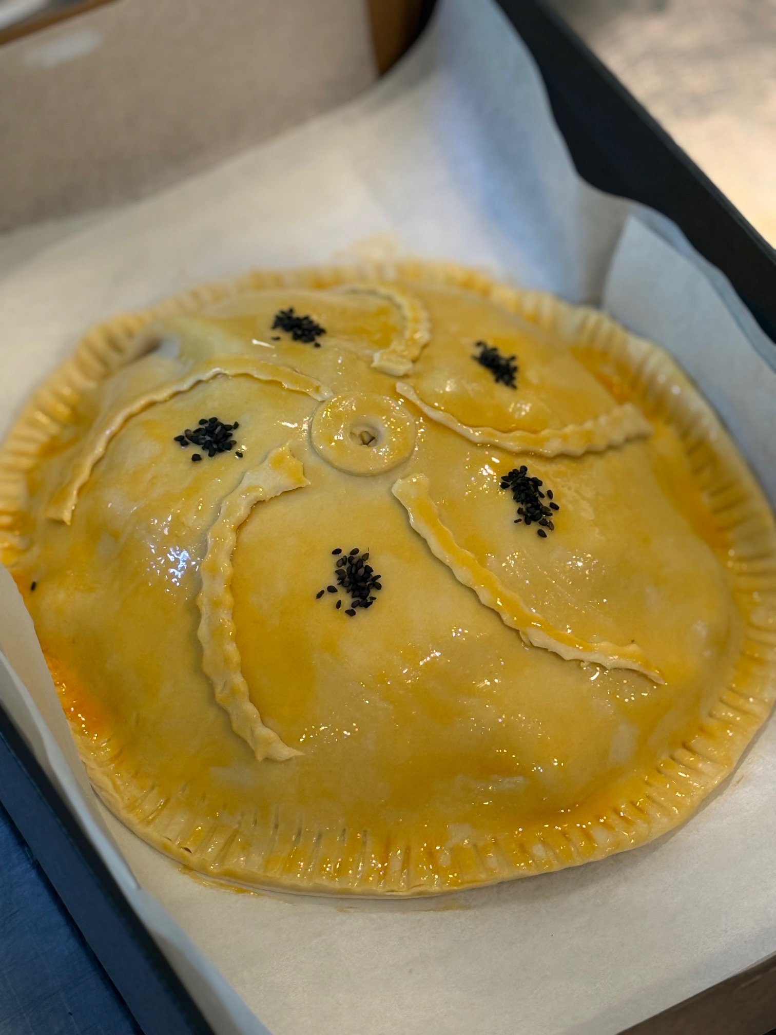 Boxed on collection and ready for you to cook yourself at 200 c for 35-40 until golden brown.