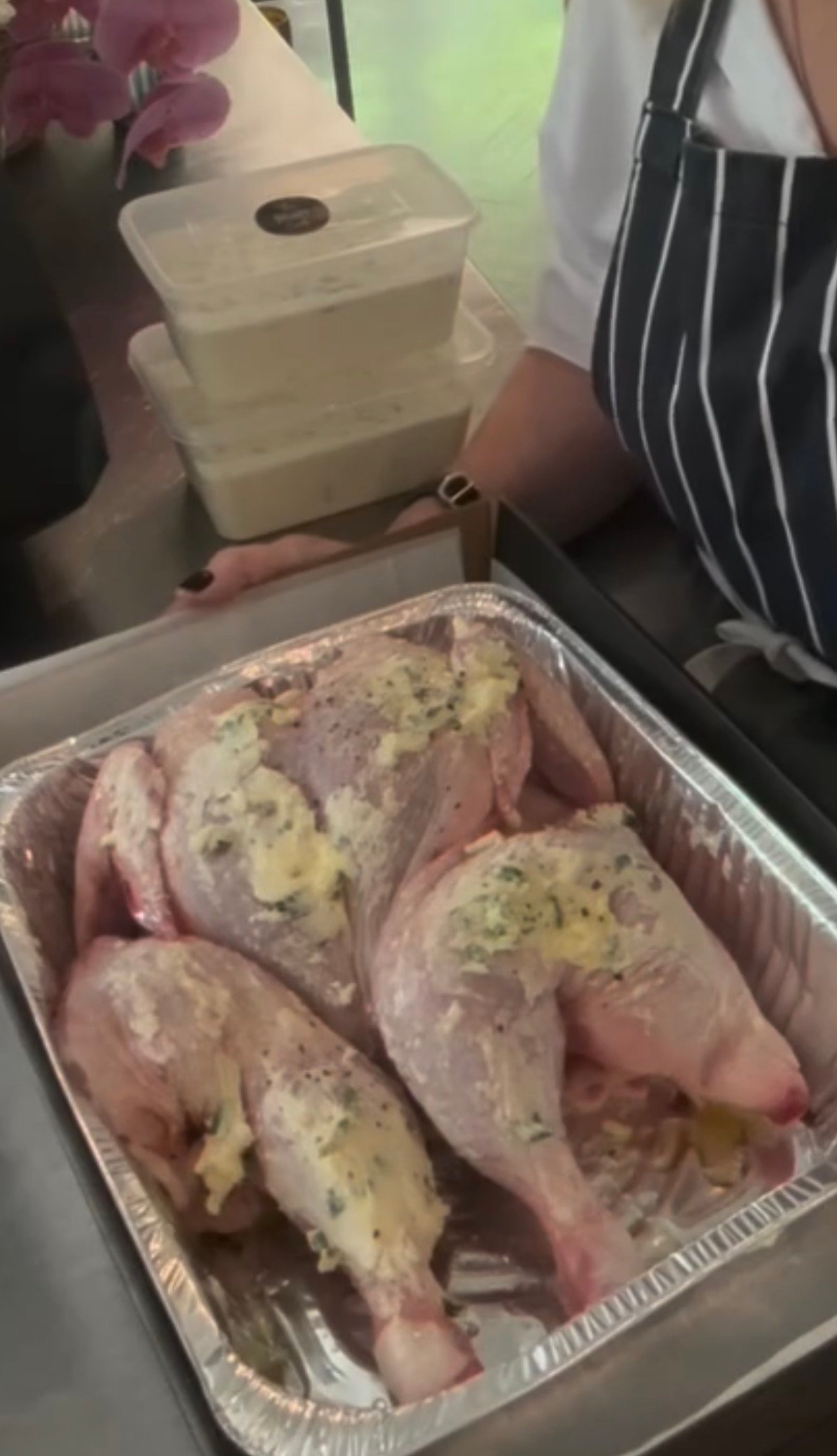 Comes already spathcocked & seasoned ,smothered in French butter, tarragon & Maldon sea salt