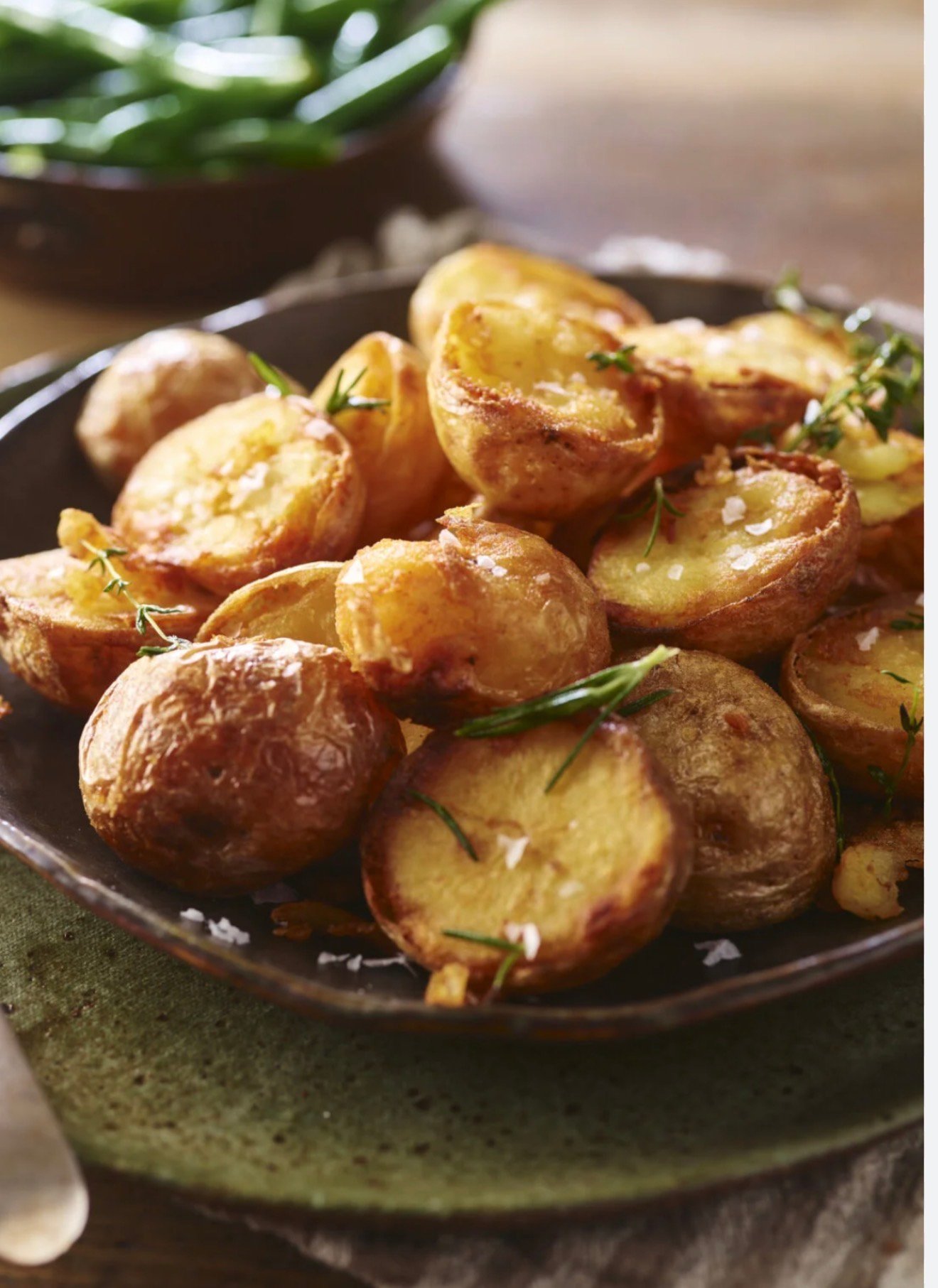 Par boiled baby pototoes cooled and then fried in a cast iron dish with duck fat, Maldon sea salt and fresh rosemary … totally indugent and totally addictive